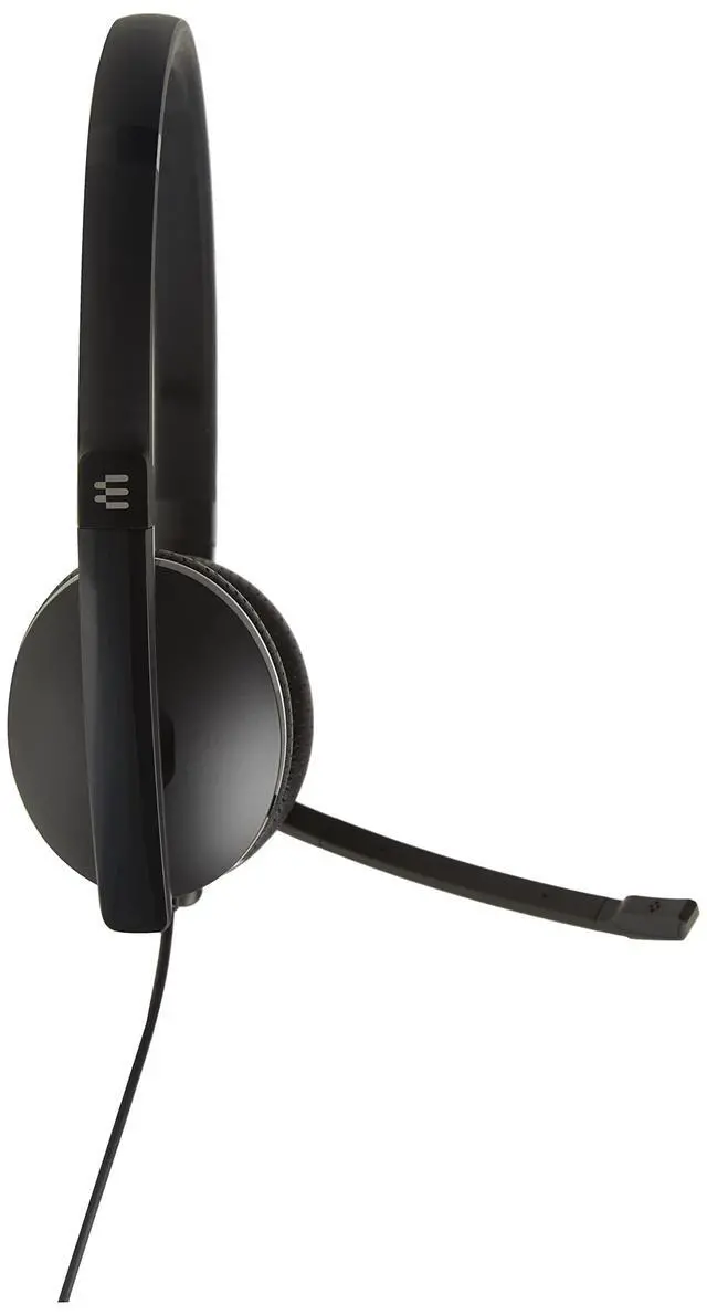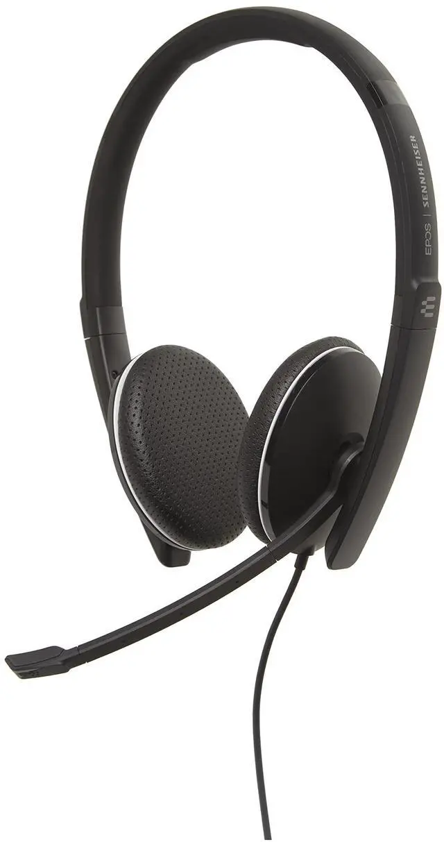 Sennheiser SC 165 USB is a double-sided headset with 3.5 mm jack and detachable USB cable, optimized for flexible UC professionals working on both PC and mobile devices. Sleek minimalistic design and great sound for calls and multimedia make this a convenient single solution for all your audio needs. Large leatherette ear pads provide immediate comfort and passive noise reduction. Sound profiles adjust automatically to communication and multimedia use. A natural listening experience with Sennheiser voice clarity and noise-cancelling microphone optimize Speech intelligibility and an in-line call control unit enables seamless call management. The bendable Boom arm folds discreetly into the headband when not in use, giving a more streamlined appearance.