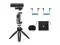 Highly directional on-camera shotgun microphone kit (supercardioid, condenser). Includes (1) MKE 400 on-camera microphone, (1) Manfrotto PIXI Mini Tripod, (1) Smartphone clamp with cold-shoe mount, (1) Locking 3.5 mm TRS - TRS coiled cable, (1) Locking 3.5 mm TRS - TRRS coiled cable, (1) Furry windshield for MKE 400, (1) Pouch and (2) AAA batteries.