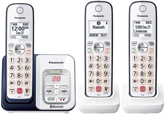 About this item LINK2CELL - A cordless phone system that operates together with your cell phone. Simply charge your cell phone through the USB port on the cordless phone base unit and sync via Bluetooth ONE TOUCH TELEPHONE CALL BLOCK - Register up to 150 numbers with one-touch Call Block on the cordless phone base unit & cordless handsets. BI-LINGUAL CALLER ID - Talking Caller ID audibly announces caller information in either English or Spanish from the telephones base unit and cordless handsets when you can't view the screen QUICK-READ MESSAGE COUNTER - Instantly know how many phone messages you have received with a large, easy-to-read message counter on the phone system's elegant cordless base unit TELEPHONE RINGER IDs - Assigned pre-programmed ringtones will sound on the phones base unit and cordless handsets when corresponding Caller ID numbers are received from incoming telephone calls
