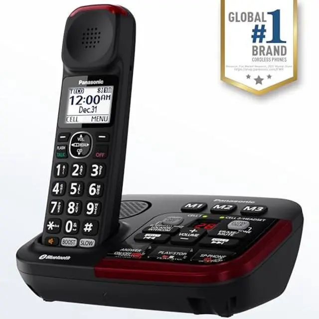 Panasonic 1 Handset Amplified Cordless Phone with Slow Talk, 40dB Volume Boost, 100dB Lound Visual Ringer, Hearing Aid Compatibility, Large Screen and Backlit Keypad, Link2Cell - KX-TGM430B (Black)