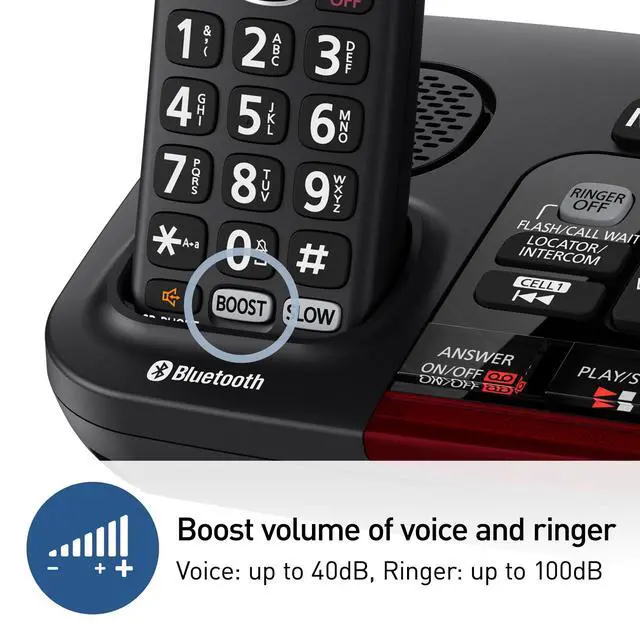 • Hear and Be Heard, Loud and Clear: Boost the volume of the call (up to 40 dB); includes six voice Tone Settings and a loud base unit ringer (up to 100 dB)