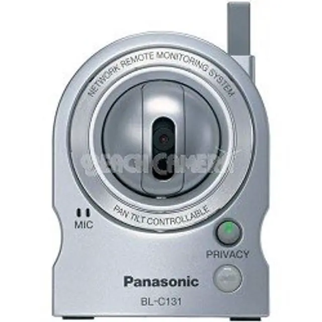 Wireless Network Camera Indoor- Panasonic wireless indoor color network camera- MPEG-4 and JPEG- Built-in microphone- Remote pan/tilt control- 802.11 b/G- Resolution 640x480 320x240192x144- 3 image quality modes- Max. 30 frames per second- Security user ID and password- 10X Digital zoom- Lens fixed F 2.8 - One-way voice direction (from camera to PC) - Built-inhuman detection sensor- Requires included AC adapter- Network Ethernet interface- Motion detection function- 1 Year manufacturer's warranty-