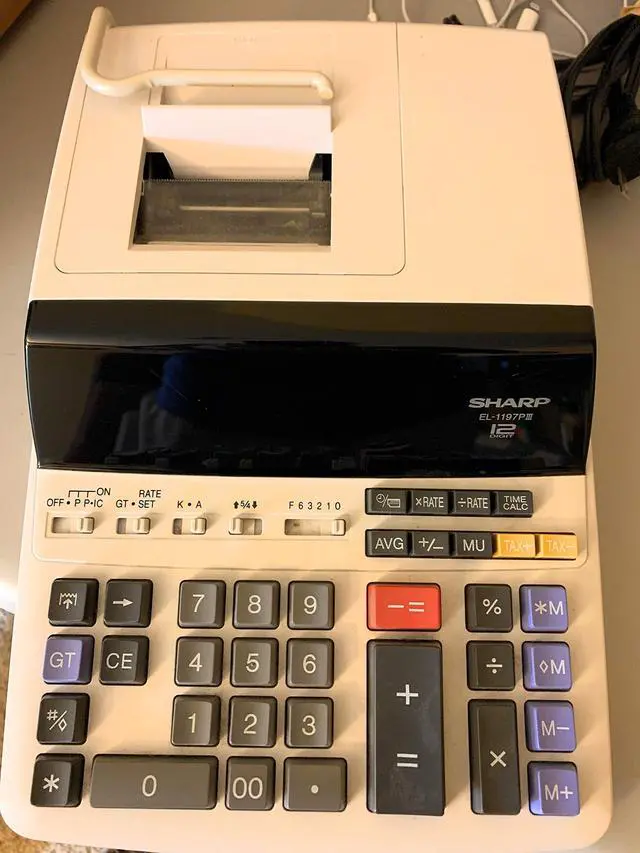 Sharp EL-1197PIII Heavy Duty Color Printing Calculator with Clock and Calendar.