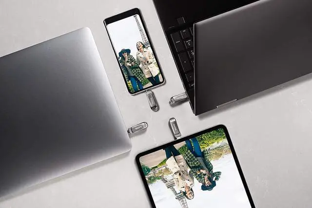 Looking for stylish storage that works across your USB Type-C and Type-A devices? Whether youre taking amazing photos of your latest adventure or creating content in the office, the SanDisk Ultra Dual Drive Luxe is the all-metal, 2-in-1 flash drive that lets you easily move files between USB Type-C smartphone, tablets and Macs and USB Type-A computers. (2) Just plug in this premium drive to easily free up space on your smartphone or to automatically back up your photos, videos, music, documents and contacts. (3) Plus, the dual-purpose swivel design in a high-quality metal housing protects connectors and features a keyring hole to take your drive on the go.
