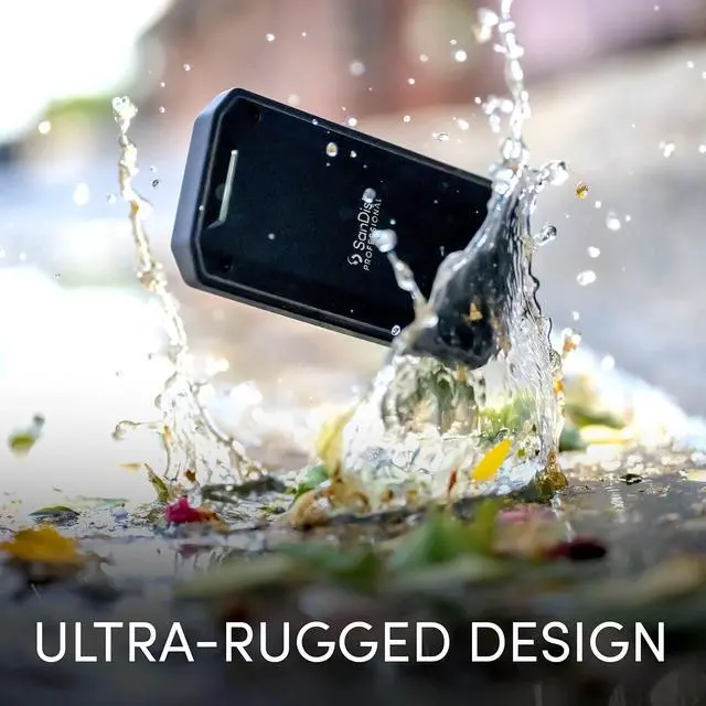 Immerse yourself in the action with the supercharged, ultra-rugged SanDisk Professional PRO-G40 SSD. Built for compatibility with both Thunderbolt 3 and USB-C, this versatile drive enables you to efficiently collaborate across devices. Sustaining speeds up to 2700MB/s (1) read and 1900MB/s (1) write via Thunderbolt 3, the PRO-G40 SSD will power through your most demanding workflows. Bring this ultra-durable drive wherever your vision takes you its 3m drop and 4000lb. crush resistance along with an IP68 dust- and water-resistant rating help withstand the elements in just about every location. (On a carpeted concrete floor.