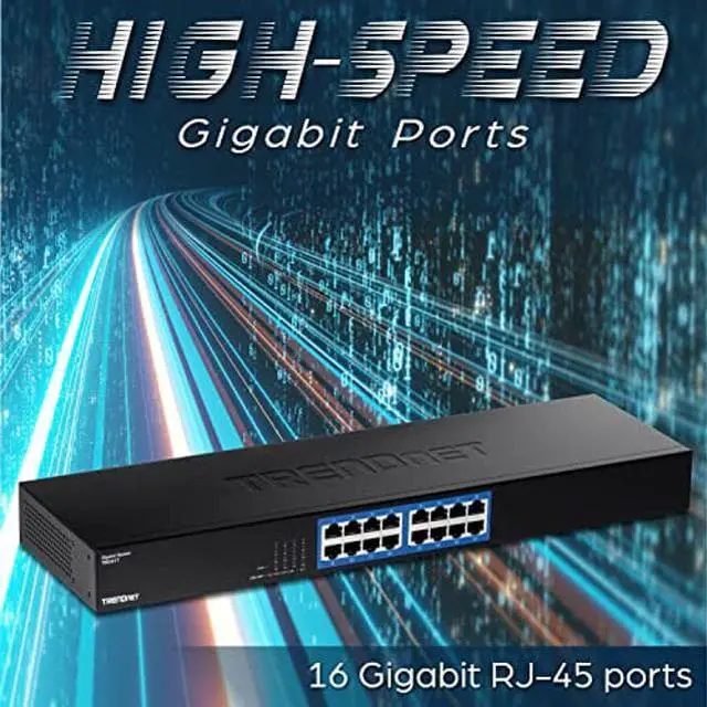 TRENDnet 16-Port Gigabit Switch, TEG-S17, 16 x Gigabit RJ-45 Ports, 32Gbps Switching Capacity, Fanless Design, Metal Enclosure, Internal Power Supply, Lifetime Protection, Black