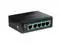 TRENDnet's 5-Port Industrial Gigabit PoE++ Powered DIN-Rail Switch with PoE Pass-Through, model TI-B541, is powered by a PoE++ switch or injector, no AC adapter is required. The PoE-powered industrial switch features four gigabit PoE+ ports to power devices such as IP cameras, VoIP handsets, and wireless access points. The switch's PoE++ powered feature allows it to be installed in a place where there is no power source nearby. With an operating temperature range of -40deg- 75 degC (-40deg - 167 degF), the hardened IP30 rated housing is suitable for extreme industrial environments.