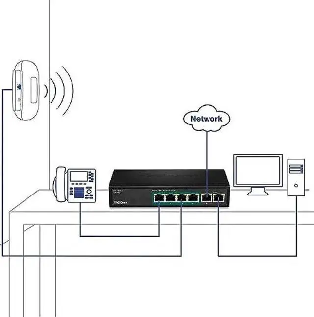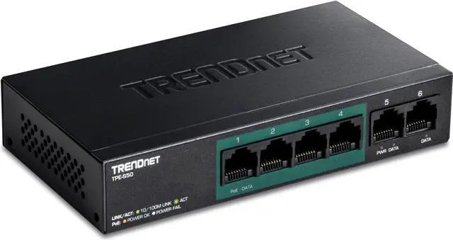 The 6-Port Fast Ethernet PoE+ Switch model TPE-S50 delivers data and power over existing Ethernet cables to power over Ethernet (PoE) devices such as access points VoIP phones and IP cameras It supports both PoE (802 3af) and PoE+ (802 3at) devices with a 60W PoE budget Plug and play this sturdy metal switch for reliable high speed PoE networking Its fan less design is perfect for quiet environments that require silent operation poe+ powera 60W PoE power budget supplies up to four power over Ethernet devices fast ethernetsix Fast Ethernet ports provide a 1 2Gbps switching capacity to support edge network installationscompact designwith a compact and lightweight housing design this switch is well-suited for desktop installations Its fan less design is perfect for quiet environments that require silent operation package contents> tpe-s50 quick installation guide> power cord (1 2M/ 4 ft )