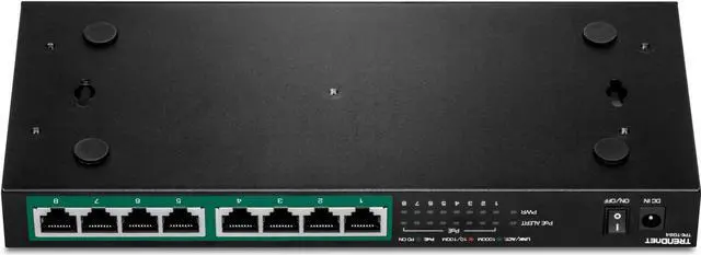 TRENDnet's 8-Port Gigabit PoE+ Switch, model TPE-TG84, reduces equipment and installation costs by delivering data and power over existing Ethernet cables. With PoE technology, users only need one set of cables to deliver both data and power. This compact network switch provides eight gigabit PoE+ ports with a total PoE power budget of 120W. The TPE-TG84 PoE+ switch allows you to network PoE devices, such as wireless access points, IP cameras, VoIP phones, IP video encoders, access controls, and more. It features a fanless design, and has a convenient option for wall mounting.