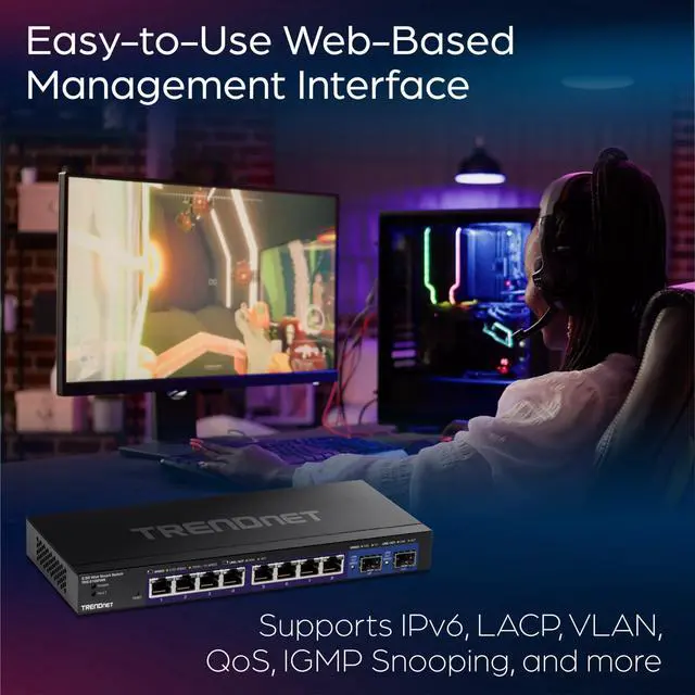 TRENDnets Multi-Gigabit Web Smart Switch series offers advanced L2+ features with enhanced traffic management controls to meet the evolving demands of todays SMB networks. These rack-mountable IPv6-ready managed switches each come with an intuitive web-based interface. Advanced managed switch features include LACP to increase bandwidth between switches by grouping ports together, VLANs for segmenting and isolating virtual LAN groups, QoS for traffic prioritization, port bandwidth controls, and SNMP monitoring, making these 2.5G managed switches with 10G SFP+ slots powerful solutions for any SMB network. Improve voice performance by isolating and prioritizing VoIP traffic from normal data traffic with an easy-to-use voice VLAN feature.