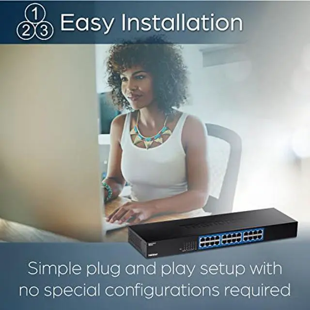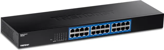 The 24-Port Gigabit Switch, model TEG-S25, provides high bandwidth performance, ease of use, and reliability. Boost office networkefficiency and eliminate network congestion with gigabit speeds and a total switching capacity of 48Gbps with full-duplex mode. Abuilt-in universal power supply reduces cable clutter and diagnostic LEDs help with network troubleshooting. Plug and play thissturdy metal switch for reliable high-speed network connectivity.