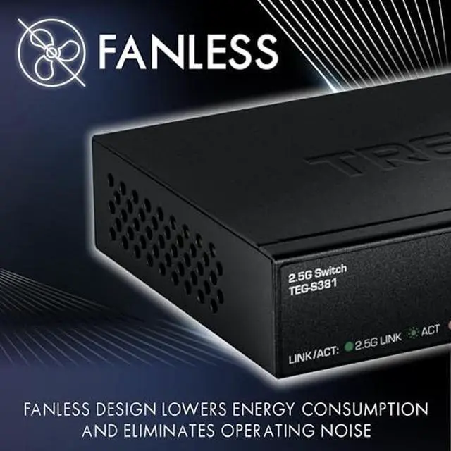 Expand your networks bandwidth and reduce bottlenecks with TRENDnets 8-Port 2.5G Switch, model TEG-S381. The 2.5G network switch comes equipped with 2.5GBASE -T RJ45 ports that provide ultra-fast speeds capable of up to 2.5G bps over your existing Cat5e or better cabling. This high-speed 2.5G switch features a durable metal enclosure and can be wall mounted for setup f lexibility. The fanless design lowers energy consumption and eliminates operating noise. TRENDnets reliable 2.5G switch is a cost effective solution to increase your networks throughput.