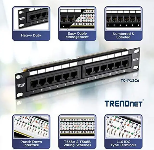 • MANUFACTURER PROTECTION: We stand by the quality of our products.The TC-P12C6 12-Port Cat6 Unshielded Patch Panel is backed and supported with 3 years of TRENDnet Manufacturer Protection.