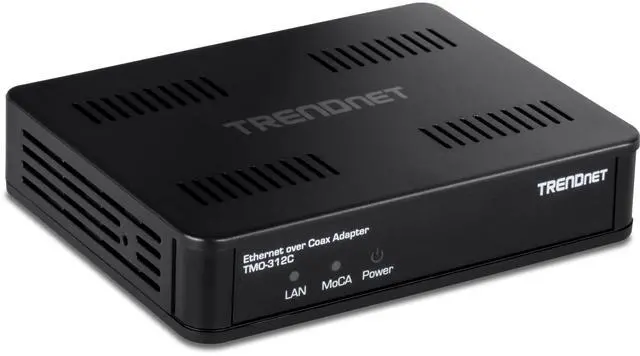 TRENDnets MoCA 2.5 Ethernet Over Coax Adapter, model TMO-312C, uses your existing coaxial cables to extend a high-speed building-wide Triple Play network throughout your home or office. These compact MoCA adapters are designed to support MoCA 2.5 deployment for digital TV, high speed-internet, and VoIP single-access subscription service offerings. Compliant with Multimedia over Coax Alliance (MoCA 2.5 ) standards with improved packet error rate technology that delivers consistent voice and video bandwidth with lowered latency.