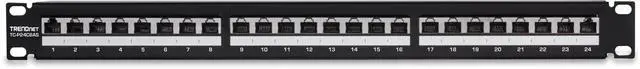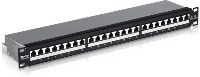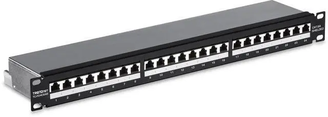 TRENDnet's 24-port Cat6A Shielded 1U Patch Panel, model TC-P24C6AS, is ideal for Gigabit and 10G Copper Ethernet network applications. This patch panel is perfect for use with Cat6A shielded cabling, which is specifically designed to eliminate EMI and crosstalk ensuring peak performance and data integrity.