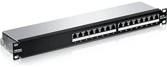 TREND net's 16-Port Cat6A Shielded 1U Patch Panel, model TC-P16C6AS, is ideal for gigabit and 10G Copper Ethernet network applications. This patch panel is perfect for use with Cat6A shielded cabling, which is specifically designed to eliminate EMI and crosstalk, ensuring peak performance and data integrity.