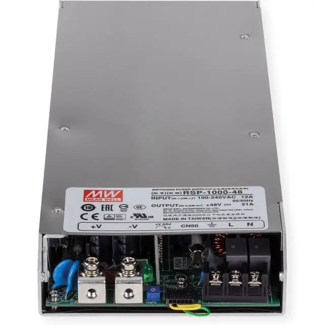 TRENDnet's AC to DC Industrial Power Supply, model TI-RSP100048, supplies up to 1000W (48V DC, 21A) of power to industrialequipment, such as PoE switches and WiFi access points. This industrial power supply comes with active PFC and overload currentprotection. Industrial Applications -Power network devices for manufacturing, 1000W Power -Provides up to 1000W (48V DC, 21A) of powerfor PoE devices such as switches, networkcameras, and access points. Operating Temperature -Designed for industrial environments with anoperating temperature range of -25 70 C(-13 158 F). general industrial, warehousing, surveillance, and corporate applications.