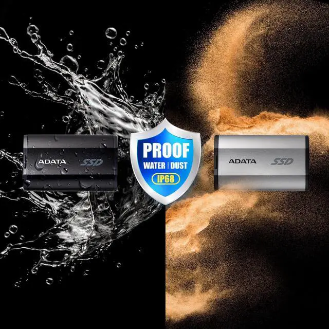 Supports new generation game consoles. ^^ Performance up to 2000MB/c with USB3 Gen2x2 supported ports. For other interfaces, speed will be limited by host devices. ^^ Super compact. Smaller than a credit card and weight slightly more than a pen. ^^ Supports multiple operating systems including Windows and Mac. Drive default at exFAT format to support cross-platforms compatibility. ^^ The SD810 has passed strict IEC IP68 standards for dust ingress and can be submerged for 60 minutes in over 1m of water.