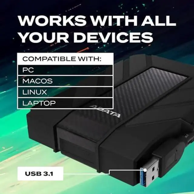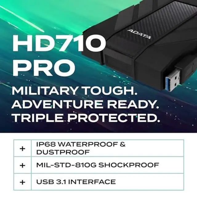ADATA HD710 Pro ruggedized USB 3.1 portable hard drive is waterproof, dustproof and exceed military-grade shockproof for extreme mobile data protection (IP68). Unique casing design meets or exceeds stringent International Electro technical Commission (IEC) standards and certified as truly waterproof and dustproof. For additional toughness, HD710 Pro is certified to meet or exceed US Army MIL-STD-810G 516.6 1.5 meters drop test specifications as Shockproof. HD710 Pro delivers ultra-fast USB 3.1 performance with maximum data transfer rate of 5 gigabits per second. Storing, transporting and sharing data on-the-go is made easy with HD710 Pro.