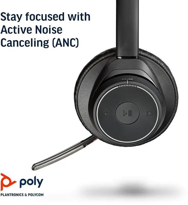 Plantronics - Voyager Focus UC (Poly) - Bluetooth Dual-Ear (Stereo) Headset with Boom Mic - USB-A Compatible with PC and/or Mac - Active Noise Canceling - Works with Teams (Certified), Zoom & more