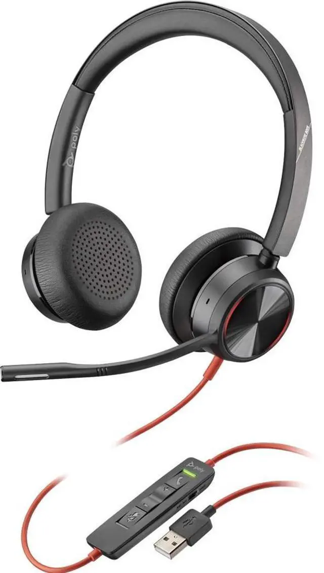 Plantronics Poly - Blackwire 8225 Wired Headset with Boom Mic Dual-Ear (Stereo) Computer Headset - USB-A to Connect to Your PC/Mac - Active Noise Canceling-Works with Teams (Certified), Zoom &More
