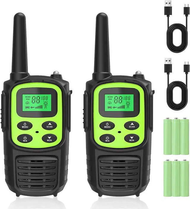 [(Rechargeable Walkies Talkies)] The rechargeable walkie talkies come with 3*600MAh NI-MH AAA rechargeable batteries and USB charging cables, it supports fast charge and provides overcharge.You can charge them anytime,such as charged by power bank,car.Long standby time allows you to stay connected at work or outdoors.The walkie talkies suit farm,road trip,warehouse,cruise ship,camping, hiking,hunting,boating,fishing,climbing,cycling and so on.