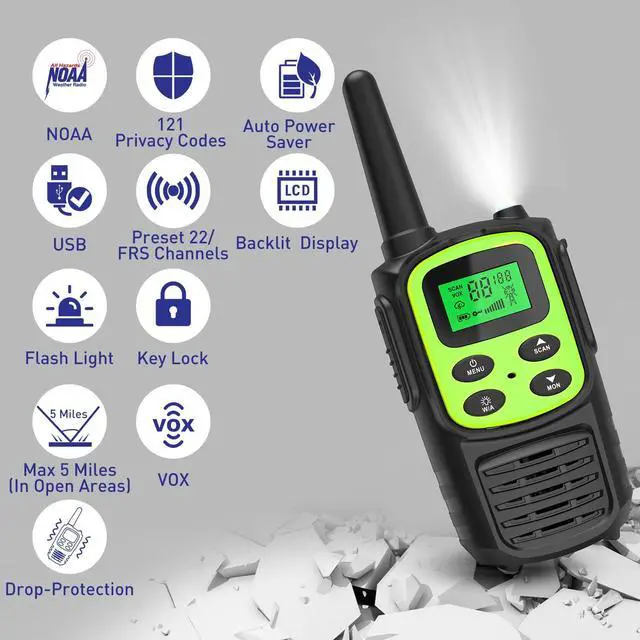 Rechargeable Walkie Talkies, Fvamom Walkies Talkies for Adults with 22 Channels, Long Range Walkie Talkies with NOAA Weather Channels, VOX LCD Display LED Flashlight (Green)