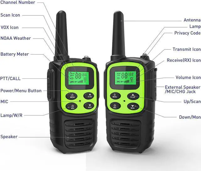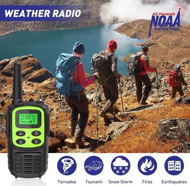 Rechargeable Walkie Talkies,Fvamom Walkies Talkies for Adults with 22 Channels,Long Range Walkie Talkies with NOAA Weather Channels,VOX LCD Display LED Flashlight (Green)