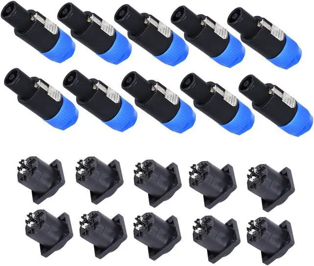 HBU 10 Sets (20 Packs) Speakon Plug Kit - 10pcs Pole SpeakON Connectors and 10pcs NL4MP Chassis Panel Mount Socket - Pro PA DJ NL4FC, NL4FX, NLT4X, NL4MPR Connector with Twist Lock