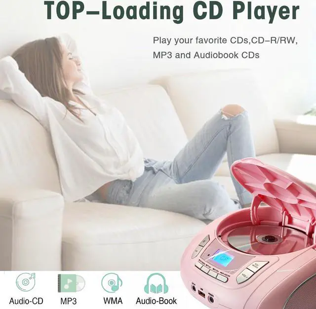 Portable CD Player Boombox with Bluetooth, FM Radio, USB MP3 Playback, CD Players for Home or Outdoor