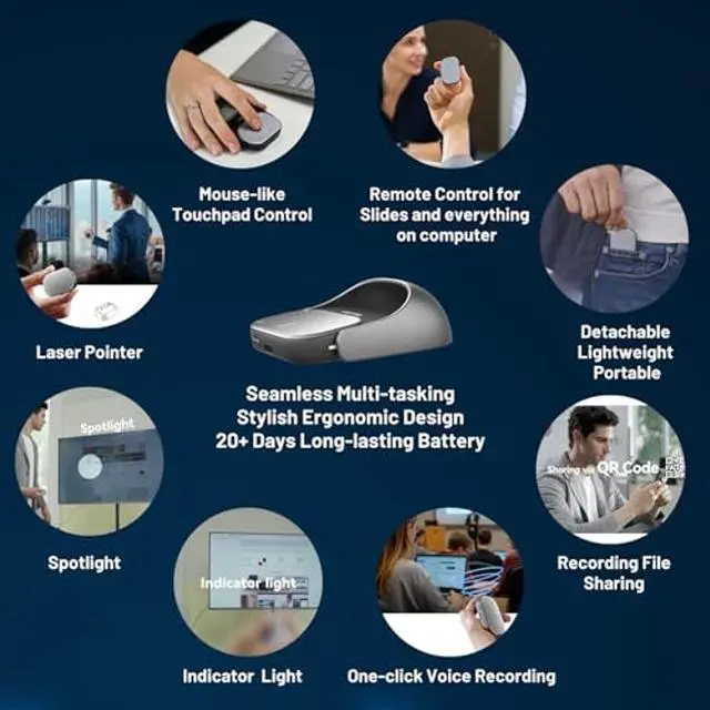 [(Unique Multifunctional Detachable Air Mouse)] Cheerdots2 Air Mouse comes with a stylish magnetic detachable design. It's an air mouse, wireless touchpad, presentation clicker, and recording pen all in one. Its upgraded ergonomic shape fits your hand perfectly and responds to natural hand movements. Weighing only 70g, you can carry it around in your pocket for on-the-go use.