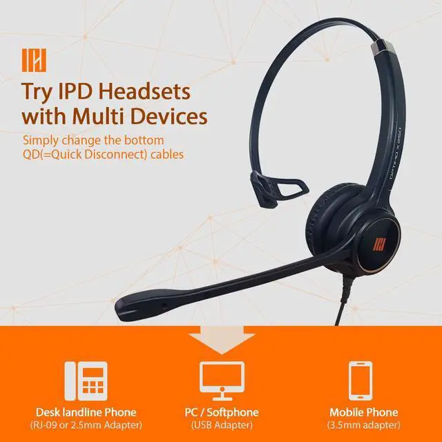 [WIDEBAND AUDIO & NOISE CANCELLING MICROPHONE] IPD IPH-250 Single Ear wired phone headset has a HD Wideband speaker to be clear sound and passive noise cancelling microphone make clearer conversation by reducing background noise