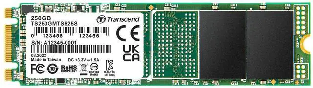 Transcend MTS825 250GB M.2 2280 SATA III SSD, Up to 500MB/s, Compatible w/Ultrabook Laptop PC Desktop, 3D TLC NAND Flash Internal Solid State Drive, LDPC/Error Correction ECC/B+M Key/SLC Cache
