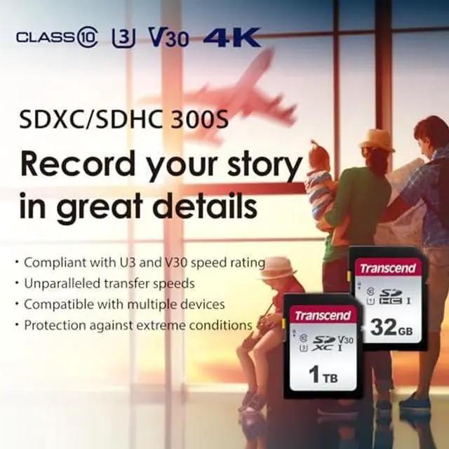 Transcend's SDXC/SDHC 300S memory cards provide the performance and capacity necessary to harness the full power of your UHS-I compliant digital camera or camcorder. In addition to incredible transfer speeds, The cards meet UHS video Speed Class 30 (V30) standards, allowing for smooth, uninterrupted 4K video capture.
