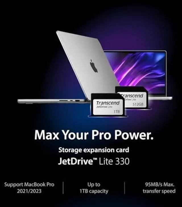 Introducing Transcends JetDrive Lite storage expansion cards JetDrive Lite 330 for the MacBook Pro 2021. JetDrive Lite expansion cards are a quick and easy way to gain the additional space you need without adding any bulk to your MacBook computer.