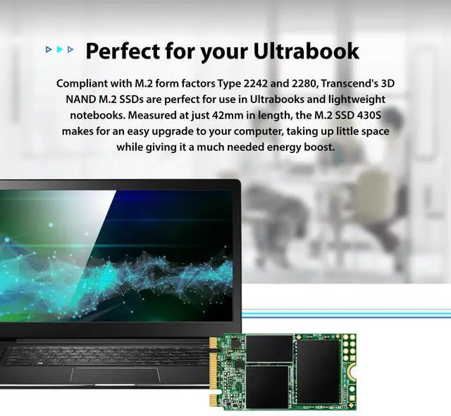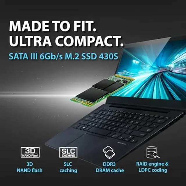 Space-saving M. 2 Type 2242 form factor ^^ Up to 560 MB/s Read; 500 MB/s write ^^ 3D NAND Flash memory ^^ Raid engine and LDPC coding for data integrity; DDR3 DRAM cache for short Access times ^^ Supports DevSleep Ultra low power state, s. M. A. R. To., trim, and NCQ commands