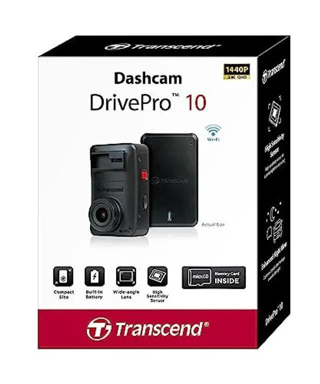 Featuring a compact, minimalist design, Transcend's DrivePro 10 dashcam comes equipped with a high-sensitivity image sensor to capture high-resolution images with extremely fine tonal gradation even in low light; a 140 wide angle lens offering the best coverage of the road; up to 1440P 2K QHD recording at 30fps to capture every crucial detail; Wi-Fi connectivity for live monitoring on your smart gadgets; and emergency recording for optimum protection.