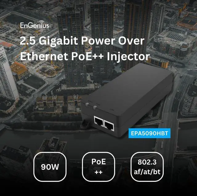 EnGenius 2.5Gbps Power Over Ethernet PoE++ Injector | 90W | Type 3 & 4 | 802.3af/at/bt | Plug & Play | Up to 100 Meters (328ft) | Single Port [EPA5090HBT]