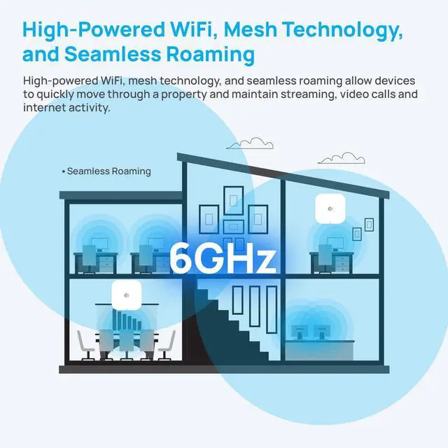 Unmatched Speeds Across All Frequencies Enjoy smooth streaming and gaming with speeds of 5.8 Gbps on 6 GHz, 2.9 Gbps on 5 GHz, and 720 Mbps on 2.4 GHz.