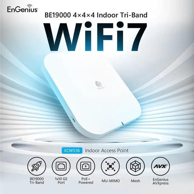 Engenius Technologies ECW536 Engenius Ecw536 Cloud-mngd Ap Wrls Wi-fi 7 Tri-band 4x4x4 /10gbe Poe++