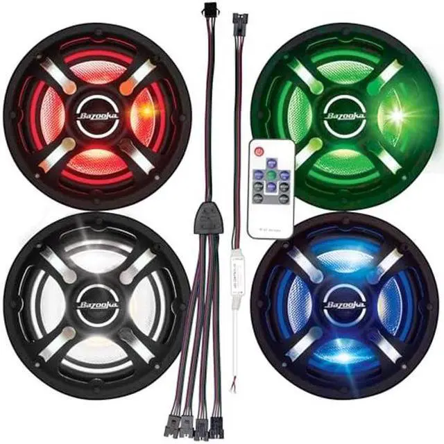 Bazooka | Marine Coax Speaker Kit | 4-Piece 6.5" LED Speakers | Plug-and-Play RGB LED Controller and Remote (4pc 6.5in Speakers) | MACBLED-KIT1
