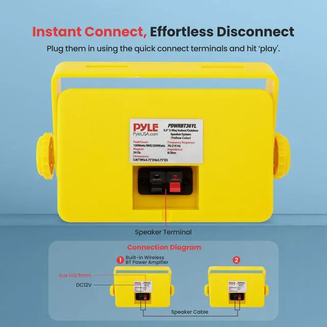 Features: - 1/2 High Compliance Polymer Tweeter - Bluetooth Wireless Music Streaming - Lightweight & Compact Size - Heavy Duty ABS Construction - Quick Connect Speaker Terminals - Completely Waterproof Design - Capacitor Crossover Network - Excellent for Use On Boats/ Marine/ Decks/ Patios/ Poolside/ Outdoors