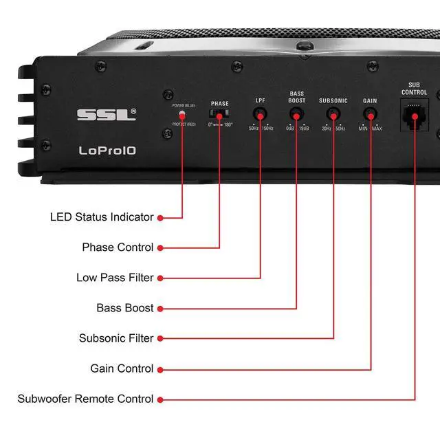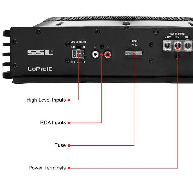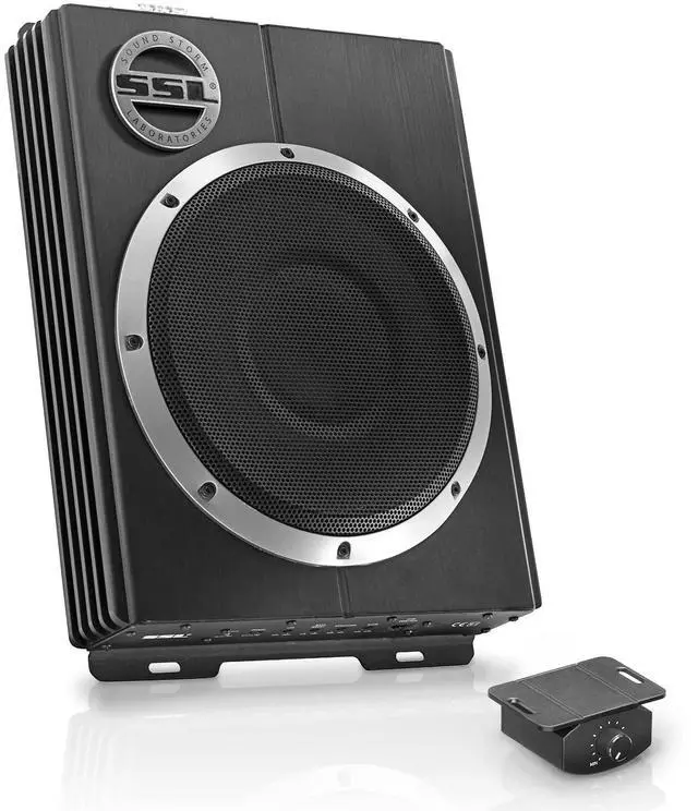 Give your vehicle's audio system an upgrade with the SSL LOPRO10 Class a/b 10"" Low profile amplified subwoofer. This powerful amplified subwoofer Features 1200 watts Max power with a MOSFET power supply to take your music to the next level. With high and low level inputs It can be hooked up to just about any In-Dash stereo. At a height of just 3"", it's perfect for fitting into tight spaces, including under the seat of many vehicles. Customize the sound with the variable low Pass Crossover, bass boost, subsonic filter, phase control and remote subwoofer control.