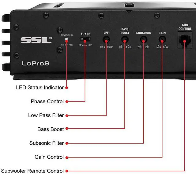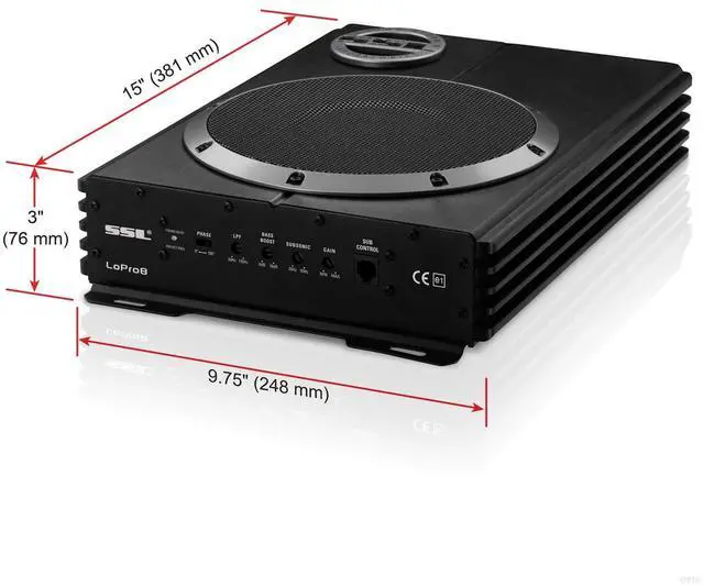 Give your vehicle's audio system an upgrade with the SSL LoPro8 Class A/B 8"" Low Profile Amplified Subwoofer. This powerful Amplified Subwoofer features 600 Watts Max Power with a MOSFET power supply to take your music to the next level. With High and Low Level Inputs it can be hooked up to just about any in-dash stereo. At a height of just 3"", it's perfect for fitting into tight spaces, including under the seat of many vehicles. Customize the sound with the Variable Low Pass Crossover, Bass Boost, Subsonic Filter, Phase Control and Remote Subwoofer Control.