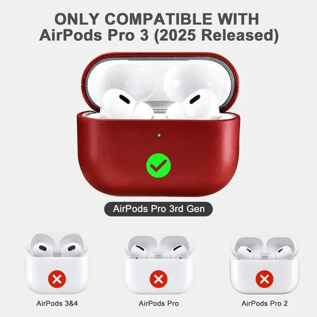 Upgrade Model A small round LED light on the front of the case allows you to monitor the battery status of the AirPods without removing the leather protective case. And will not block the propagation of the signal. Support Wired and Wireless Charging for AirPods Pro 3 with the case on.