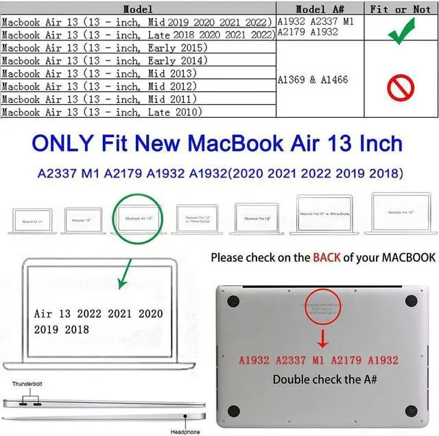 Designed ONLY to be compatible with MacBook Air 13 inch with Retina Display and Touch ID 2022 2021 2020 2019 2018