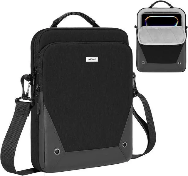 MoKo 12.9 Inch Tablet Sleeve Bag 360deg Protection Compatible with 13 Inch New iPad Pro M4 & Air M2 2024, iPad Pro 12.9 M2&M1, Galaxy Tab S8/S9 Plus 12.4" 2023, with Handle and Shoulder Strap, Black