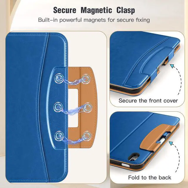 Built-in Hand Strap & Front Pocket: Interior hand strap allowing easy and firm control of the iPad 11 inch by one hand. The front pocket of this 11th gen ipad case can be used in manage documents, bank cards, business cards, notes, cash or bills