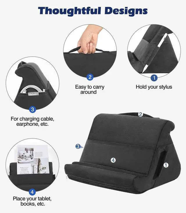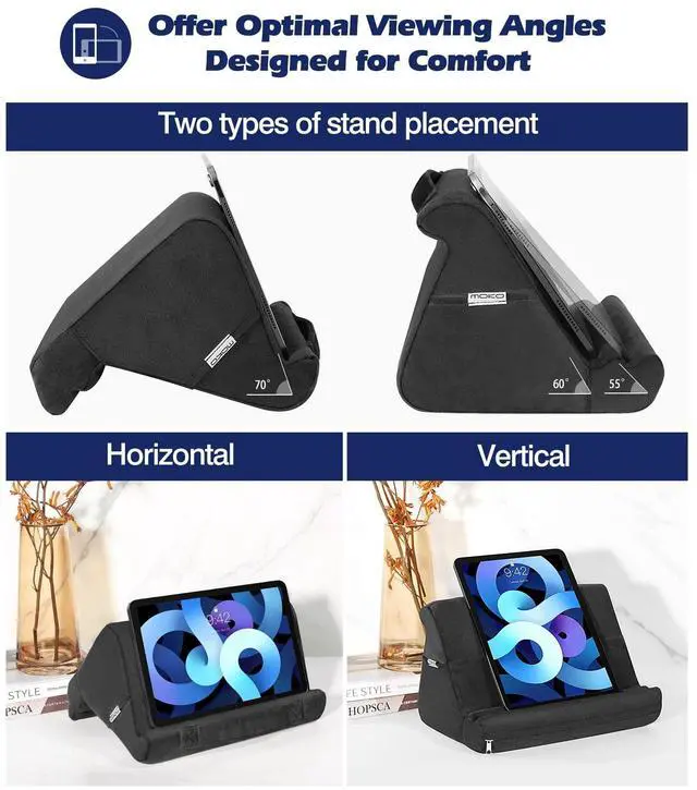 MoKo Tablet Pillow Stand, Soft Tablet Cushion Stand, with Multiple Viewing Angles and Storage Pocket, Fit with iPad 10.2 2021/iPad Air 5/4/3/iPad Pro 11/ 12.9 2022, iPad 10th, Galaxy Tab, iPhone, Black