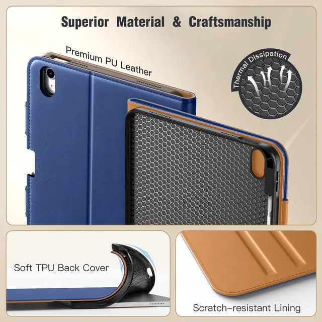 Full Protection: The iPad 11-inch case & iPad 10th generation case is made of high-quality PU leather with a soft microfiber lining and a flexible TPU back shell to provide complete protection for your precious iPad 11th generation tablet 2025 or iPad 10th generation tablet 2022, preventing impacts, scratches, and falls